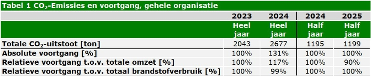 Uit de analyse van de CO2-emissies blijkt dat de organisatie op dit moment nog niet
