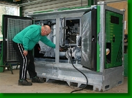 geluid-dempende behuizing met daarin opvangbakken voor diesel en olie en zijn goedgekeurd